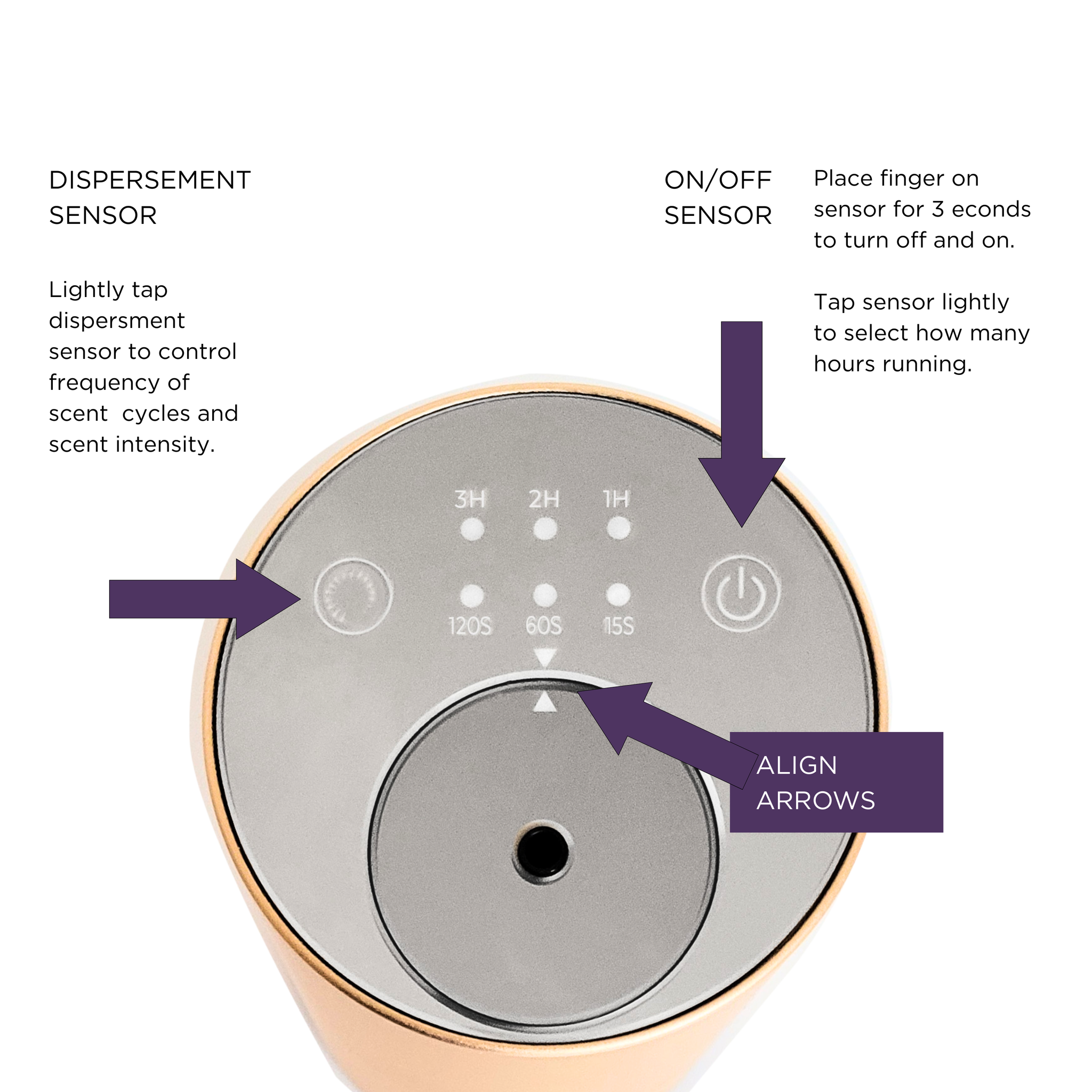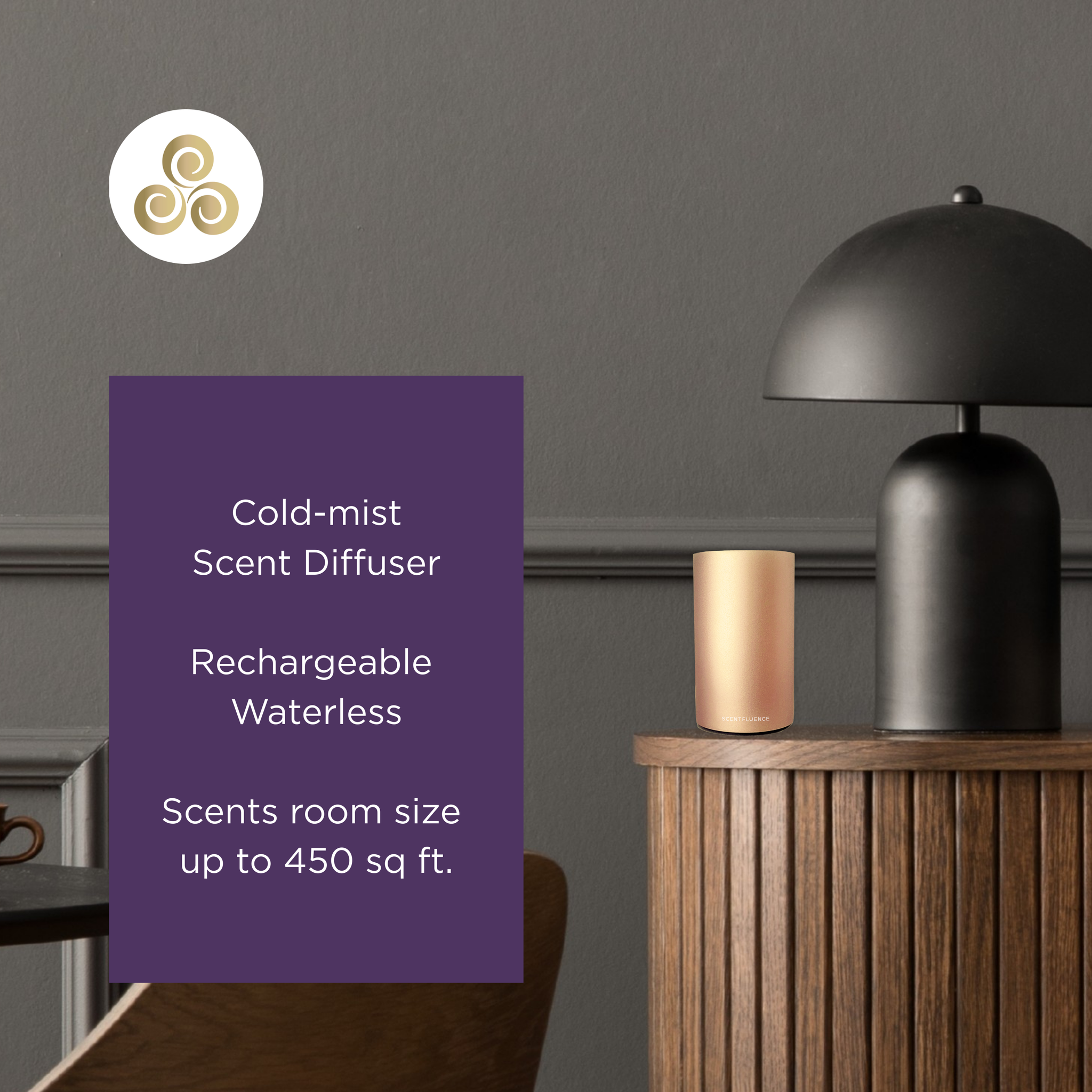 An elegant, rechargeable, easy-to-use, portable, cold-mist ambient fragrance diffuser to scent the air at home like your favorite hotel or spa. Multiple settings, and scents rooms up to 400 sq. ft., PLUS it looks luxe on your tabletop with a Chrome-style finish and mirrored top. Get started scenting easily. Works with any ScentFluence diffusible oil.