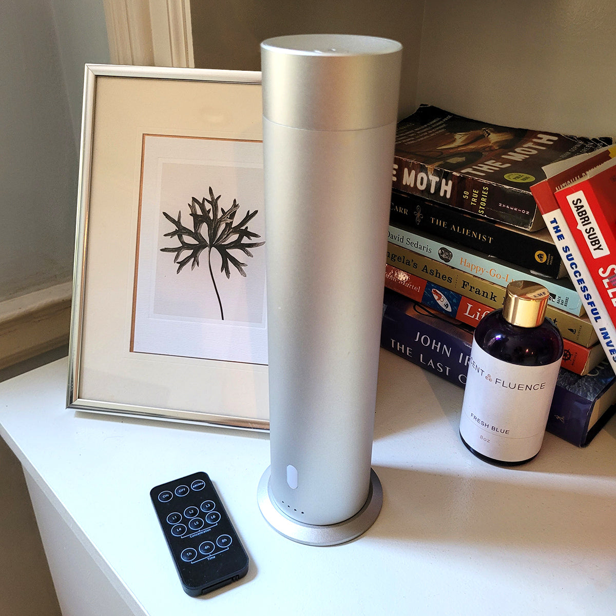 Powerful waterless scent diffuser with coverage up to 1000 sq ft. Elegant, easy to use, remote control scent dispersement. Home scenting is so easy with this elegant scent tower. 3 easy steps get you set up fast.